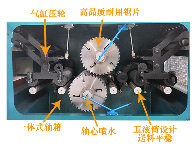 5.采用上下軸鋸設(shè)計,具有鋸片直徑小,鋸路小省料的優(yōu)點。上下鋸設(shè)計的鋸片鋸路是正常單軸鋸片鋸路的50%。加工同樣高度的木料其鋸路僅為普通單據(jù)軸的1/2。鋸切面光滑平整可以代替刨。節(jié)能降耗一次多片加工。送料速度高,大大提高加工效率,上料快,操作簡單,維護保養(yǎng)簡單,上下輥主彈簧壓力,送料平穩(wěn),增加鋸片的使用壽命。
