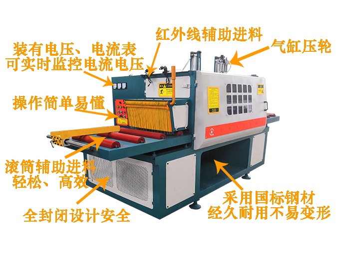 2.上壓料裝置采用氣缸壓輪,同時具有容易調(diào)節(jié)加工厚度,運行穩(wěn)定,故障率低的優(yōu)點。